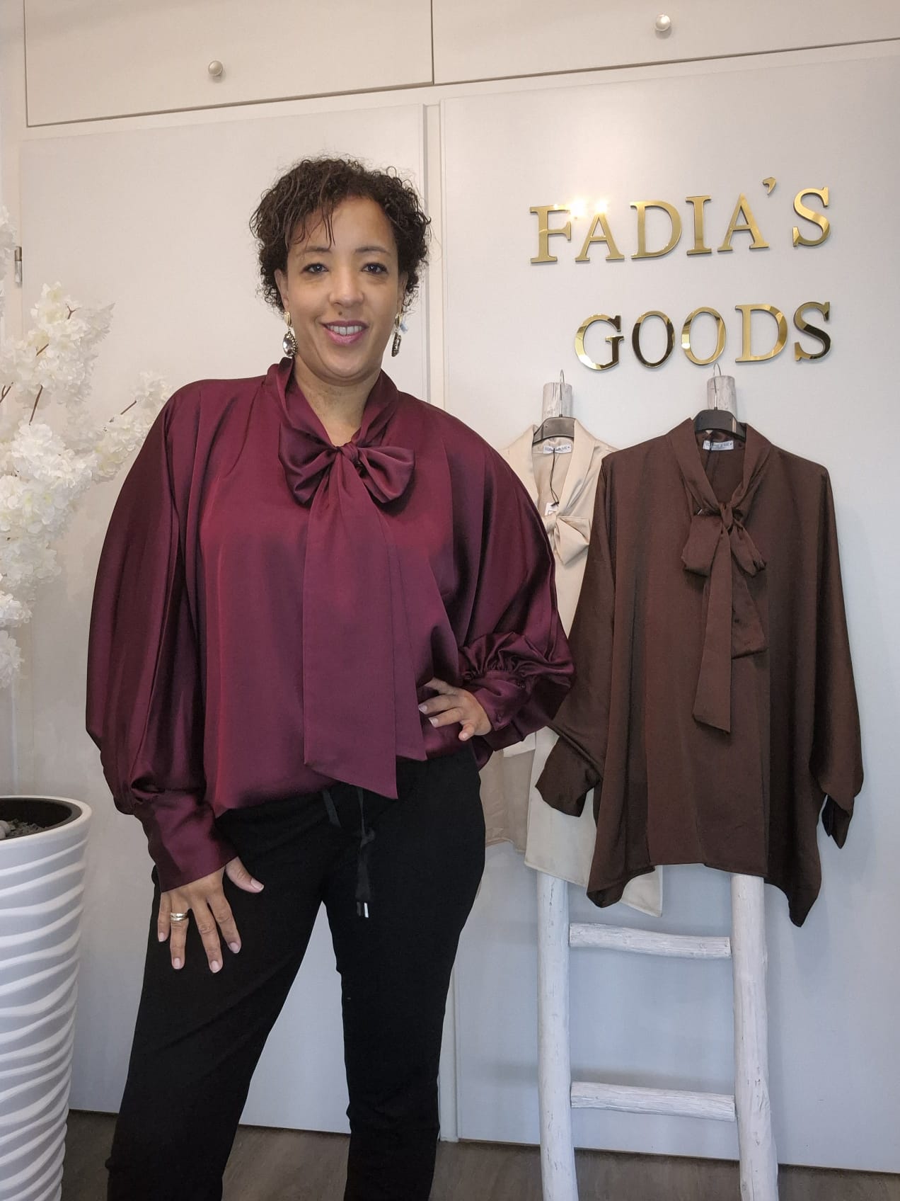 Deze elegante satijnen blouse met strikdetail is de perfecte combinatie van klasse en comfort.
